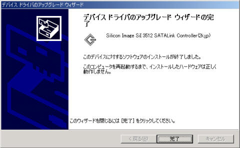 - 「デバイスドライバのアップグレード ウィザード」の画面に戻りますので、「Silicon Image