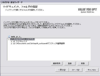 「これだけは」のインストール中にバックアップ対象にしたい任意のフォルダを指定する方法について